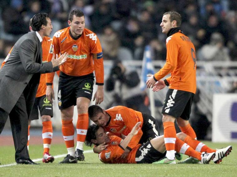21'- Carrerón de Aduriz. El Valencia sale a la contra con un taconazo de lujo de Soldado para Aduriz, que con espacios se cruza el campo, le echa un pulso en carrera a Sergio pero el donostiarra acaba fundido.